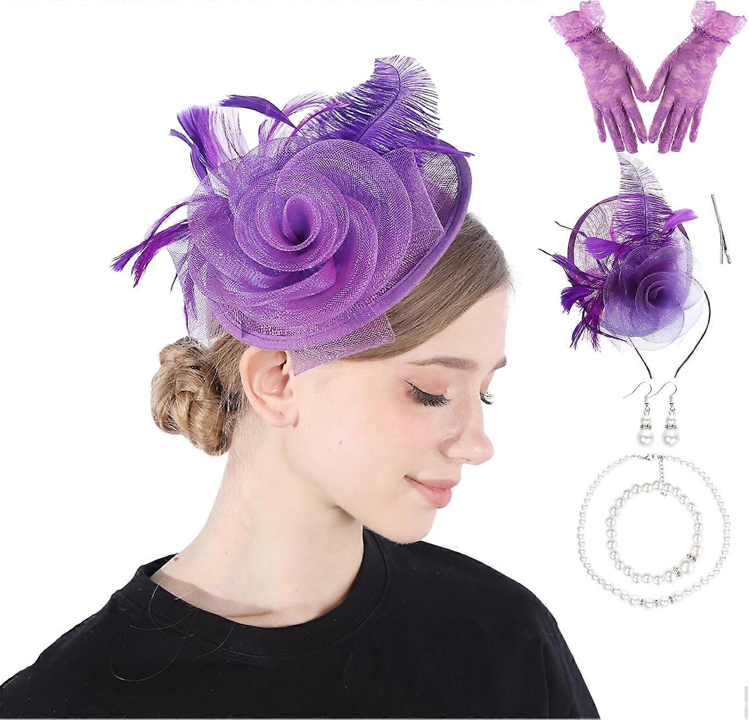 Fascinators Hat for Women, Tea Party Headband Kentucky Derby Wedding Flower Cocktail Purple