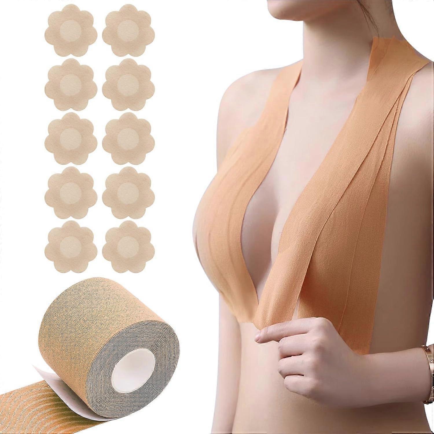Boobytape for Breast Lift,Boob Tape with 5 Pairs Disposable Nipple Covers,Lifting Boobtape for Large Breasts Dress Sport Beige