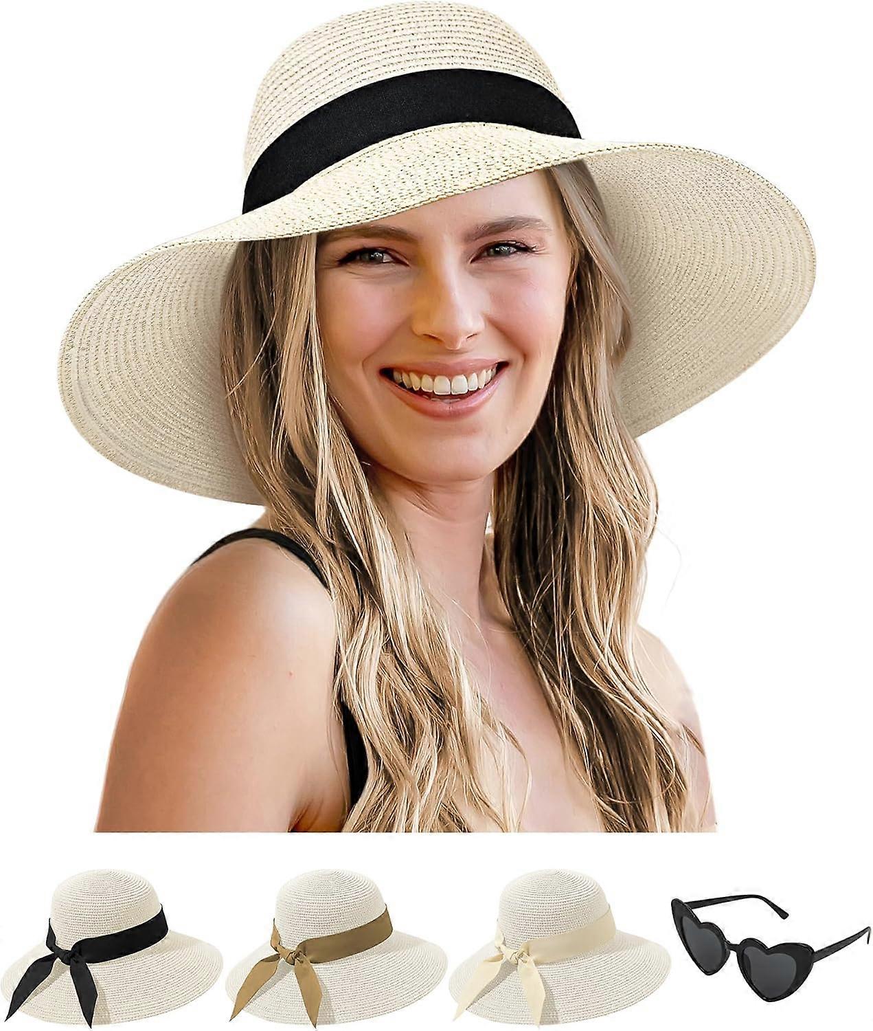 Sun Hats for Women - Oversize Large Straw Beach Hat for Summer Floppy Wide Brim Packable Foldable Roll Up UPF 50+ White X-Large
