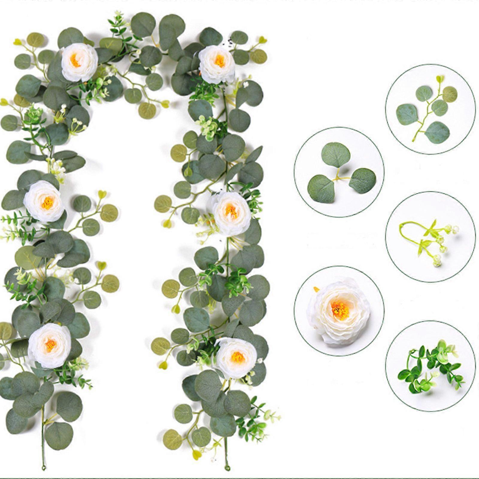 Artificial Greenery Garlands Flower Decor, Green Spring Garland Wreath Vines Decorations for Table Home Wedding Mantle Party