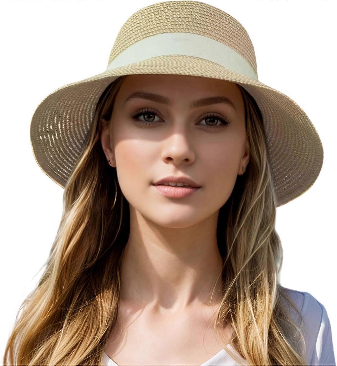 Beach Sun Straw Hats for Women, Summer Sun Protection Foldable Packable Wide Brim Hat Mixed Beige-beige Bow