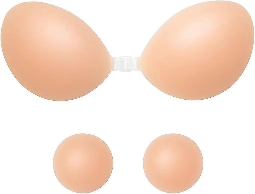 Sticky Bra, Adhesive Strapless with Nipple Covers, Silcone Invisible Push up Bra for Backless Dress Partywear Weddings Skin D