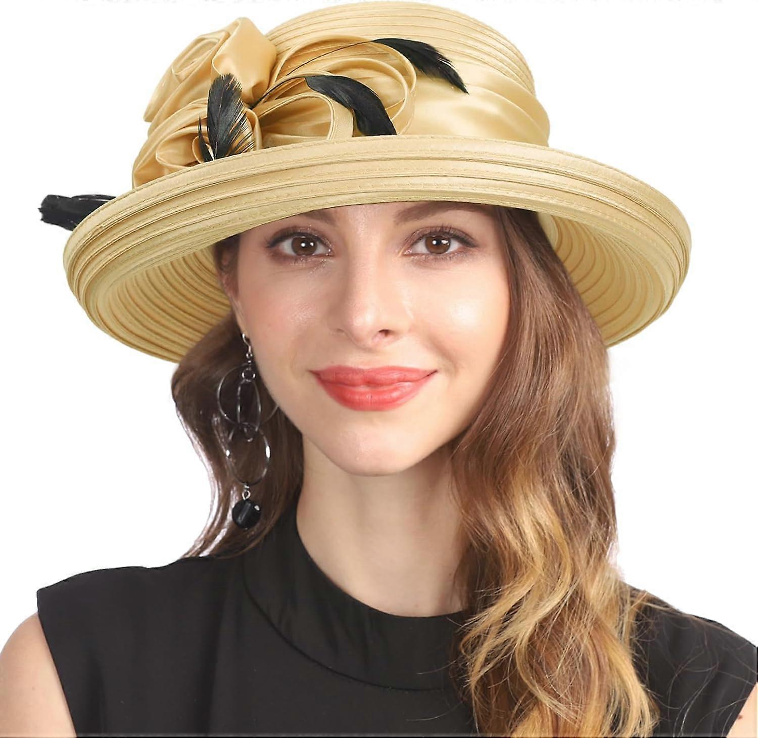 Women Derby Church Hat Tea Party Wedding Bucket Hats Sd702-champagne One Size-Medium