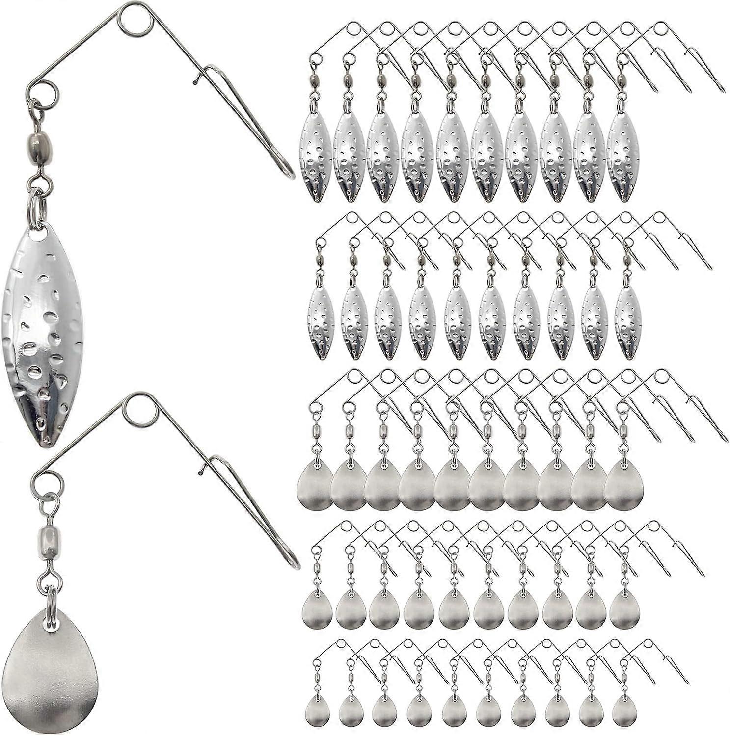 Fishing Spinnerbait Smooth Spoons Kit Fishing Spinner Blades Smooth Spoons Rigs with Willow Making Fishing Lures Replacement Accessories A: 50Pcs Sp