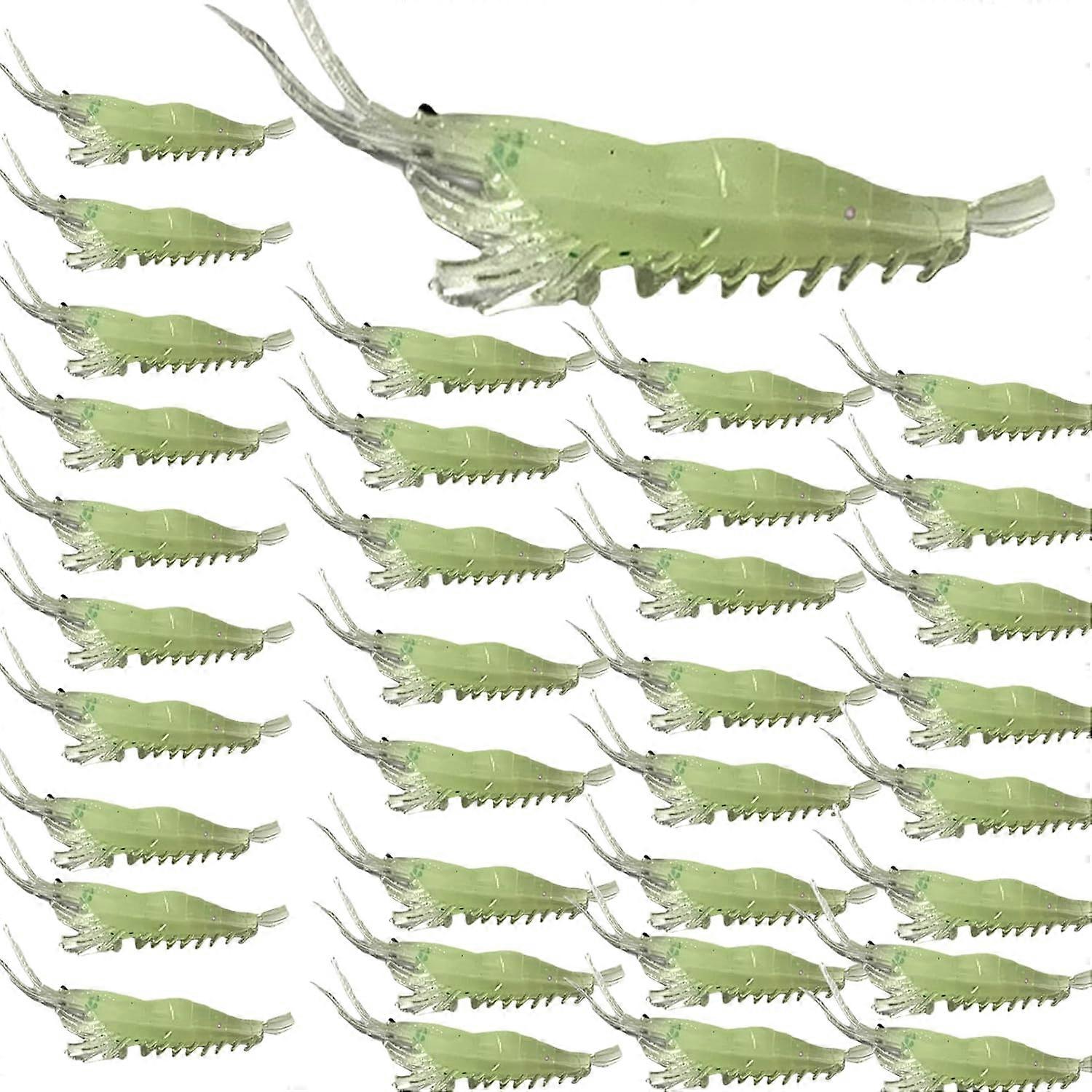 Package includes 30Pcs Simulation Shrimp Fishing Lures ,three 30 luminous. widely used for Texas rigs, Carolina rigs and slip bobber rigOr traditional fishing .Simulated shrimp designLifelike, like a real shrimpwhile the lively moving legsvery soft body and alive swimming actions attract fish a lot.Made of high quality TPE plastic materialSoft but durableIt can be used over and over againWe provide sufficient quantity. Shrimps have shiny scales.Shrimp baits set is a very useful meal for almost all fishWidely used in the stream ,lake, river, sea. Perfect for freshwater and saltwater, all kinds of complex waters and terrains. Targeting at predator fishes such as bass, yellow perch, walleye, pike, muskie, roach, trout, etc. This fishing Lures allow you to travel to your favorite fishing spot and enjoy fishing whenever and wherever you want.Universal size, 3.2in. , 1/8oz, for almost all sizes of fishSuitable for all kinds of fishing hooks, very easy to usesuch as worm hooks,Octopus Fishing Hooks,and so on.
