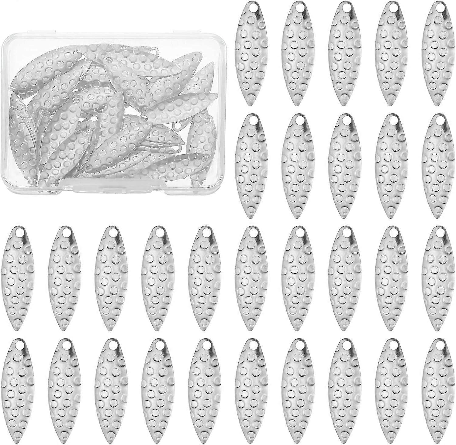 Fishing Lure Blades, 40 Pack 1" x 0.3" Round Fishing Spinner Baits Willowleaf Lure Spinner Making Part with Plastic Storage Box for Bait Fish Accesso