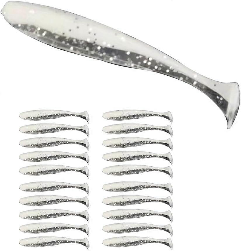 Fishing Soft Plastic Lures 20pcs 3" Paddle Tail Lures for Freshwater and Saltwater Bass Lures White Small