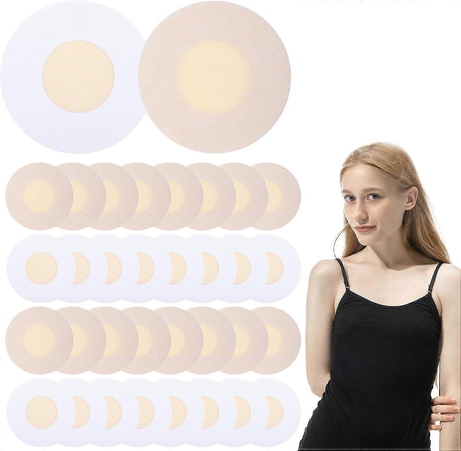 Non-woven: Our nipple pads are made of skin-friendly and soft non-woven adhesive, skin-friendly and breathable, with proper adhesiveness to skin and no need to worry about slipping, the nipple pasties can be removed with warm water to prevents irritation when peeling it offPractical Breast Pads: These disposable breast petals are perfect for tank top, halter, tube top, bathing suit, tight fitted, even bridal gown, suitable for many occasions, such as wedding, dancing, dates, beach, ceremony and moreAvoid Embarrassment: The disposable nipple pads can help to conceal nipple protrusion, it's a great option for preventing chafing while exercising. You can carry the breast covers in a tote on the go, preserve your nipples with or without a braNipple Covers Design: Our nipple covers for women with round shape that prevents them from wrinkling. The self-adhesive design of pasties nipple covers is convenient and comfortable to wear, with a natural look that won't show through, even on a t-shirtPackage includes: you will receive 50 pieces(25 pairs) of nipple covers, the petal diameter is 2.4 and the middle circle is 1.2. One-time use, compact design, very convenient and clean, just have two in your wallet and carry with you anywhere