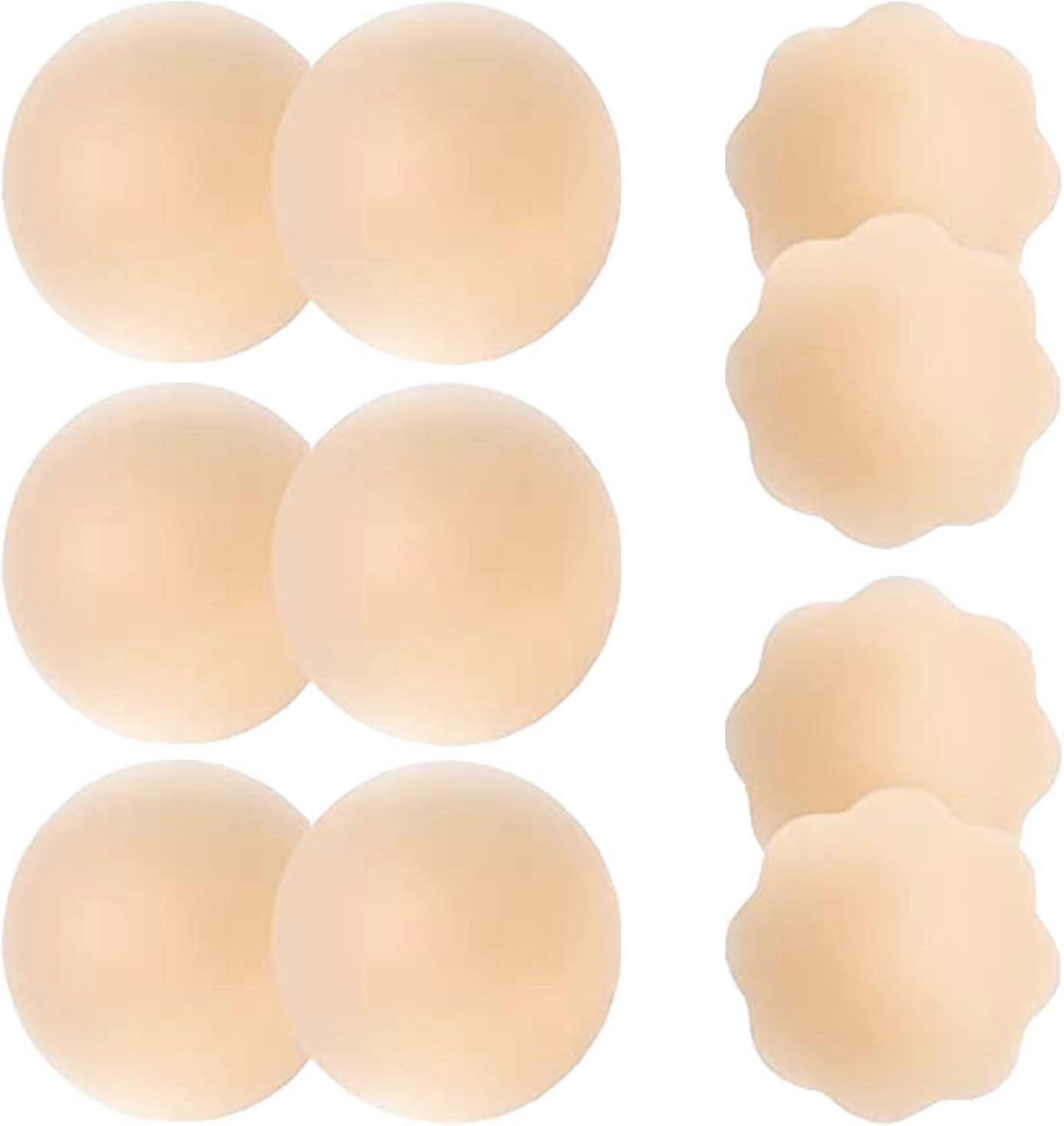 5 Pairs Pasties Women Nipple Covers Reusable Adhesive Silicone Nippleless Covers (3 Round+2 Flower) Beige