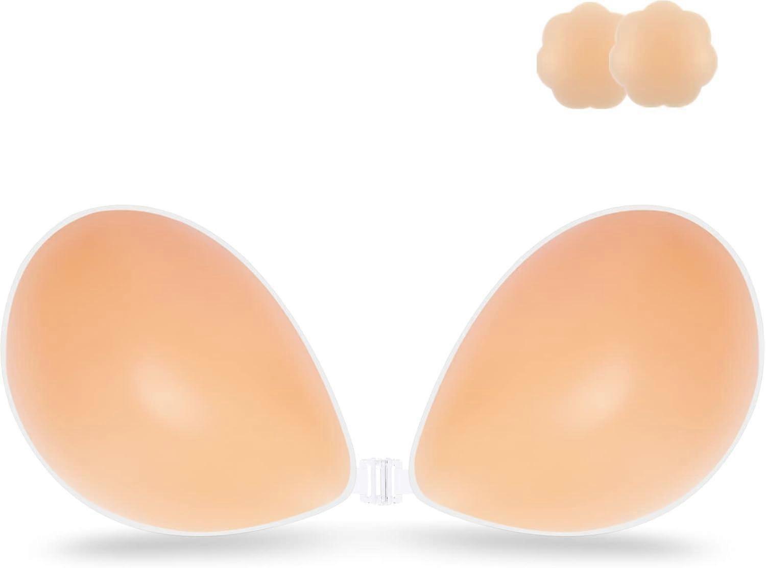 Sticky Adhesive Silicone Push Up Invisible Bra - Backless, Strapless for Women With Nipple Covers Flesh