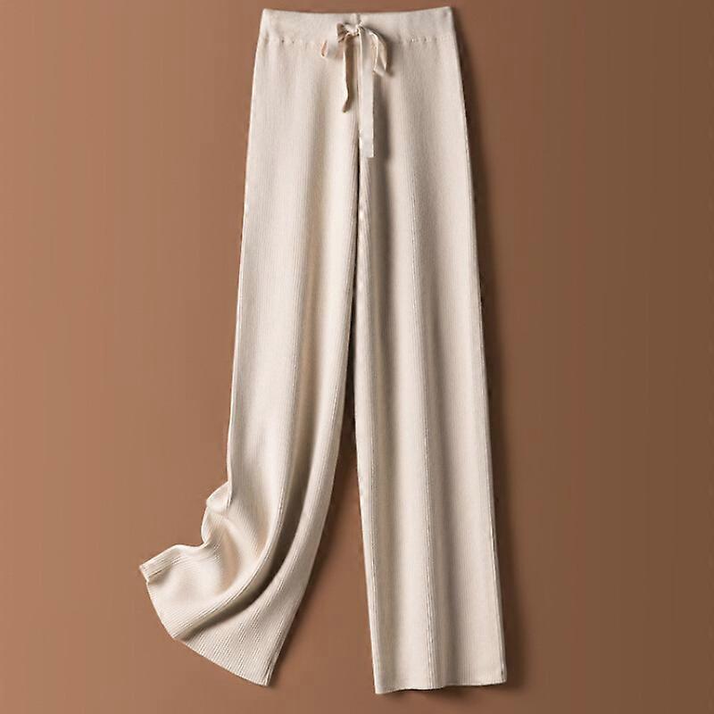 Women Knitted Wide Leg Pants Warm Faux Cashmere High Waist Trousers Drape