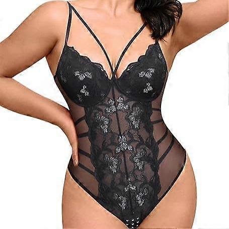 FeelinGirl Shapewear Bodysuits for Women V Neck Tummy Control Blackless Body Suits Thong Breathable Comfort Fabric Lace