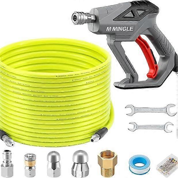 TikTokShopBlackFriday M MINGLE Sewer Jetter Kit for Pressure Washer 100 FT,Drain Cleaner Hose,Spray Lance,1/4 Inch NPT Corner Rotating Butto