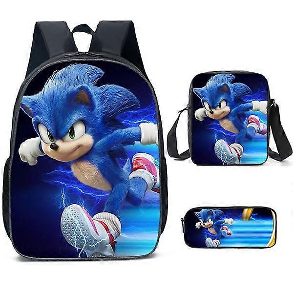 SONIC backpack Sonic elementary school backpack 3-piece anime cartoon backpack shoulder bag pencil bag Style H three-piece