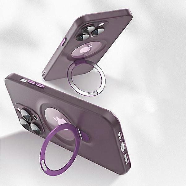 Transparent MagSafe case compatible with iPhone 15 Pro Max, matte PC shockproof thin cover with magnetic ring holder, purple