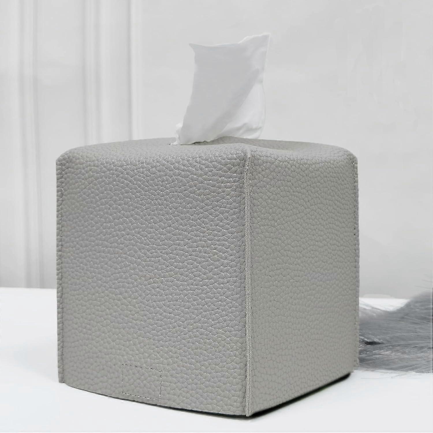 1 Pack/ 2 Pack PU Leather Tissue Holder Elegant Design: Elevate your decor with this stylish square tissue box cover; crafted from premium PU leather with chic textures like Litchi Grain; a perfect blend of sophistication and practicality Versatile Fit: Accommodates most standard square tissue boxes with dimensions of 5 x 5 x 5 inches (12.7 x 12.7 x 12.7 cm); ideal for bedrooms, bathrooms, offices, cars, or kitchens; complements various interior styles effortlessly Easy Maintenance: Constructed from wear-resistant PU leather; stains wipe off easily with a damp cloth; maintains its refined look and functionality with minimal upkeep, ensuring long-lasting use Convenient Access: Features a thoughtful open belt design with a secure bottom fastener; holds the tissue box in place and simplifies box replacement; ensures tissues are always accessible and neatly housed Compact & Portable: Foldable design allows for convenient storage and transport; ideal for use at home or on the go.