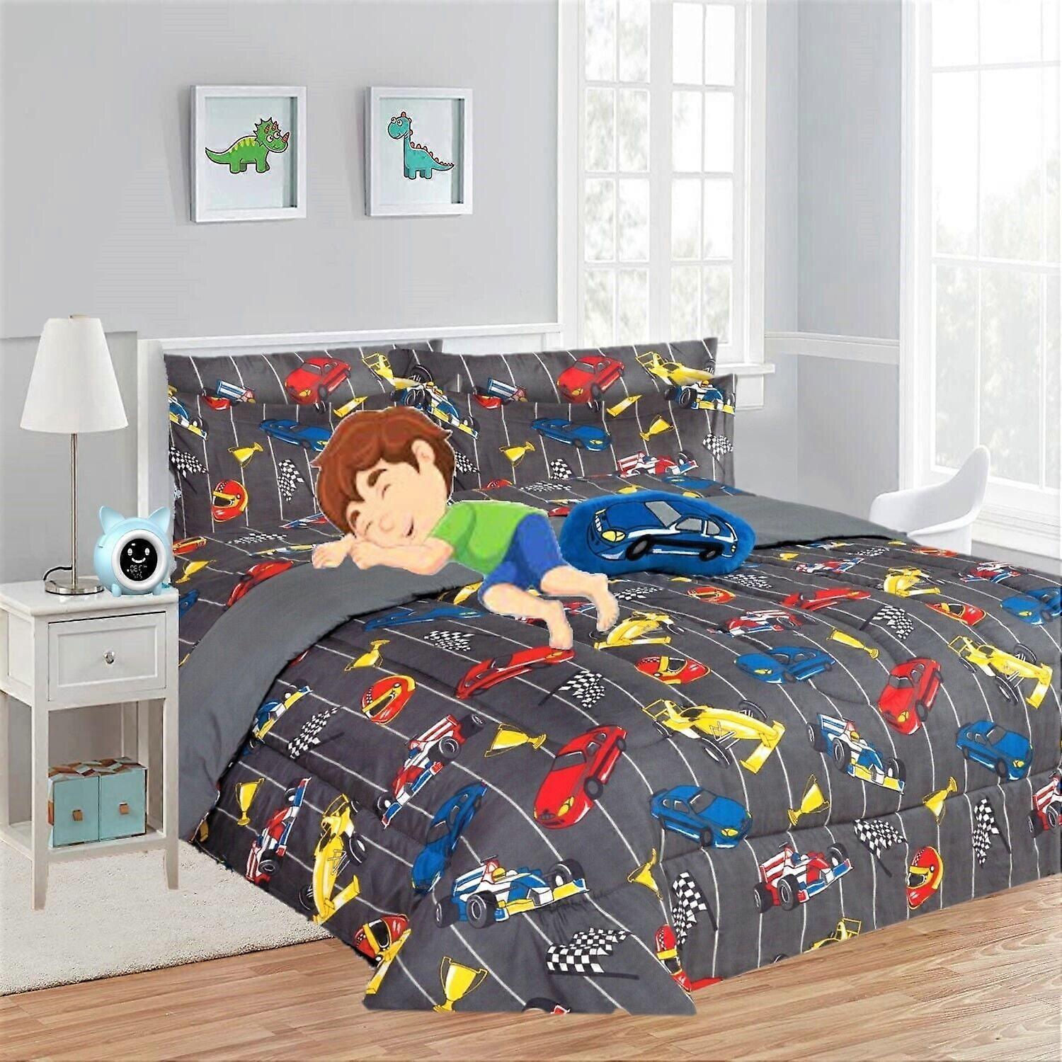 SAMIMPORT-2011 6-Piece Racing Cars Charcoal Bed in a Bag, Twin