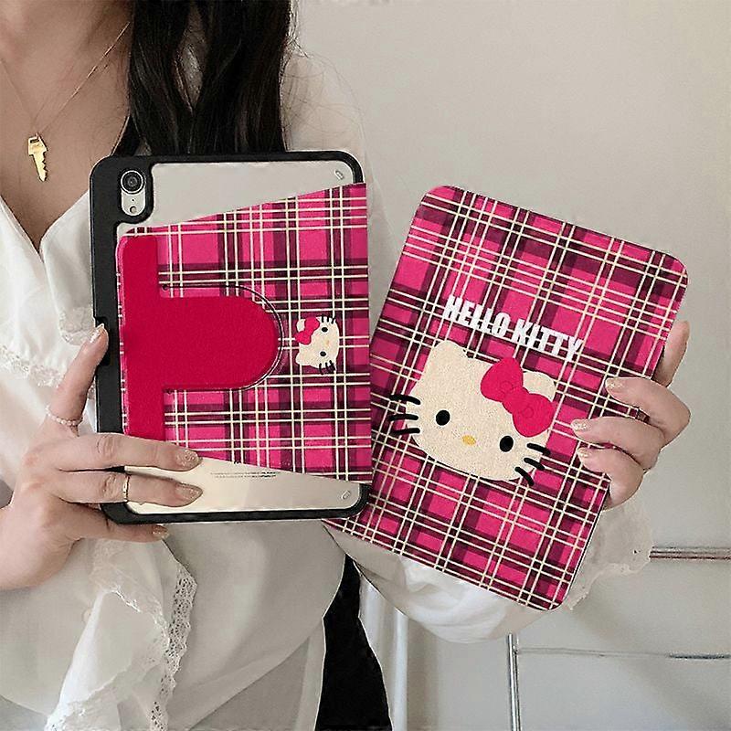 Plaid Hello Kitty compatible with iPad 10 protective cover pro2024 pen slot air6/5 female MINI6 drop-proof 10.2 tablet case