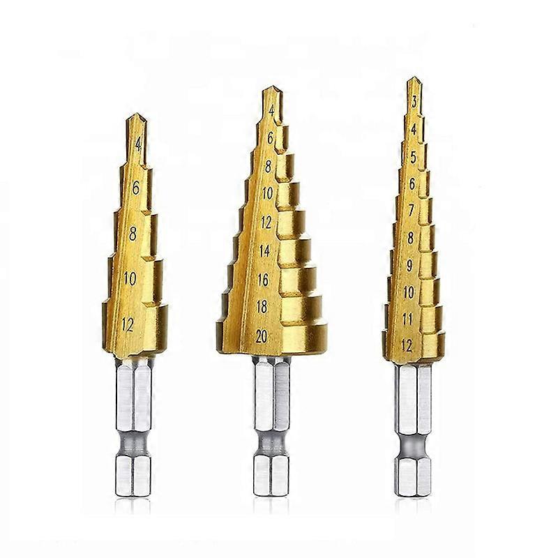Three-piece Straight Groove Titanium-plated Hexagonal Shank Step Drill Set High-speed Steel Pagoda Drill Reaming Drill Bit