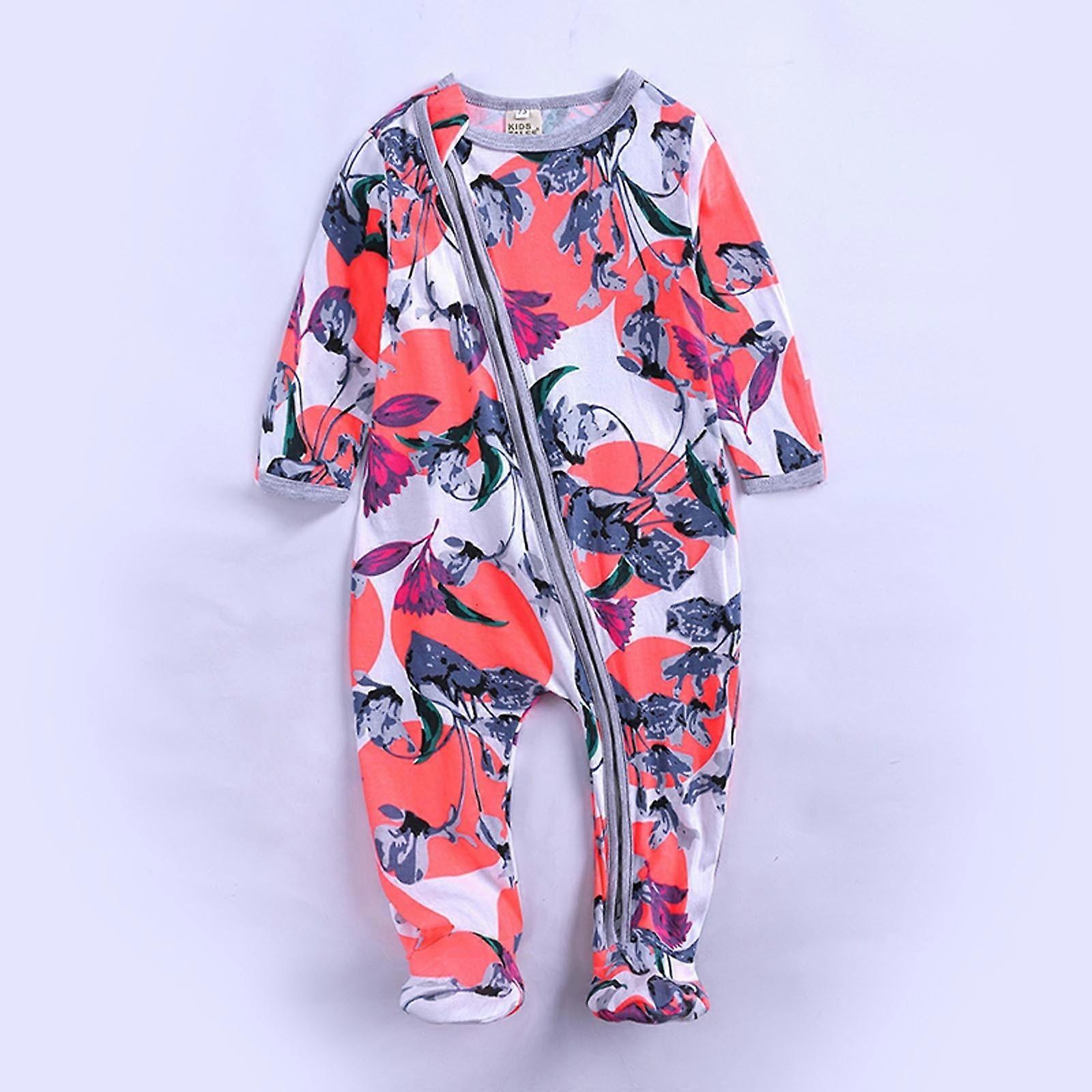 kladzum Baby baby-boys Sleep and Play Pjs, Cotton One-piece Zip Front Romper Jumpsuit Pajamas, Baby Pajamas( 0-3 Months, Orange )