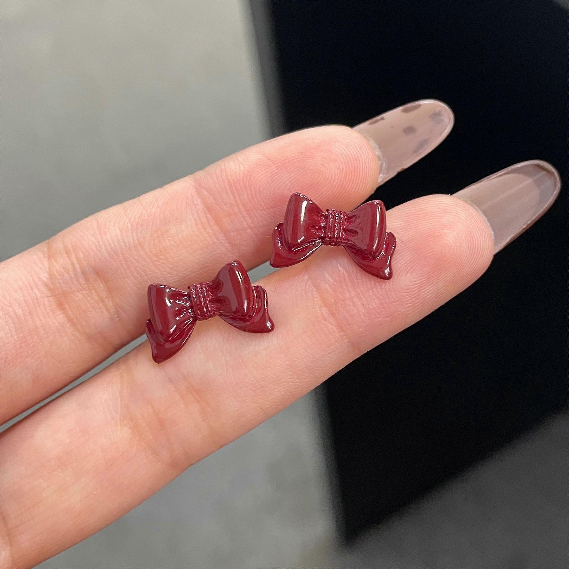 Retro Style Red Bowknot Stud Earrings for Women Girls Simple Earings Piercing Ballet Ribbon Aesthetics Elegant Ear Jewelry Gifts