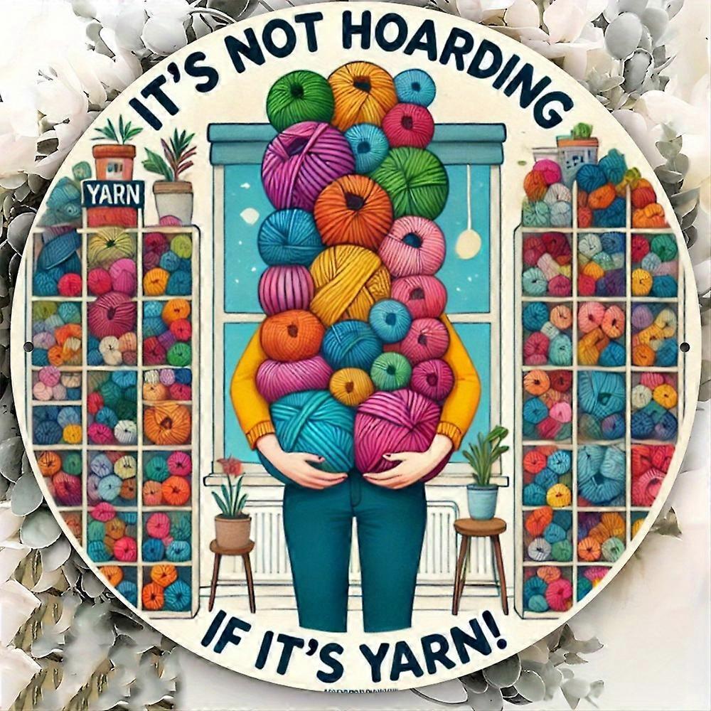 "If It's Yarn, It's Not Hoarding" Metal Wall Art, Rustic - Waterproof Pre-Drilled Knitting Enthusiasts Decor
