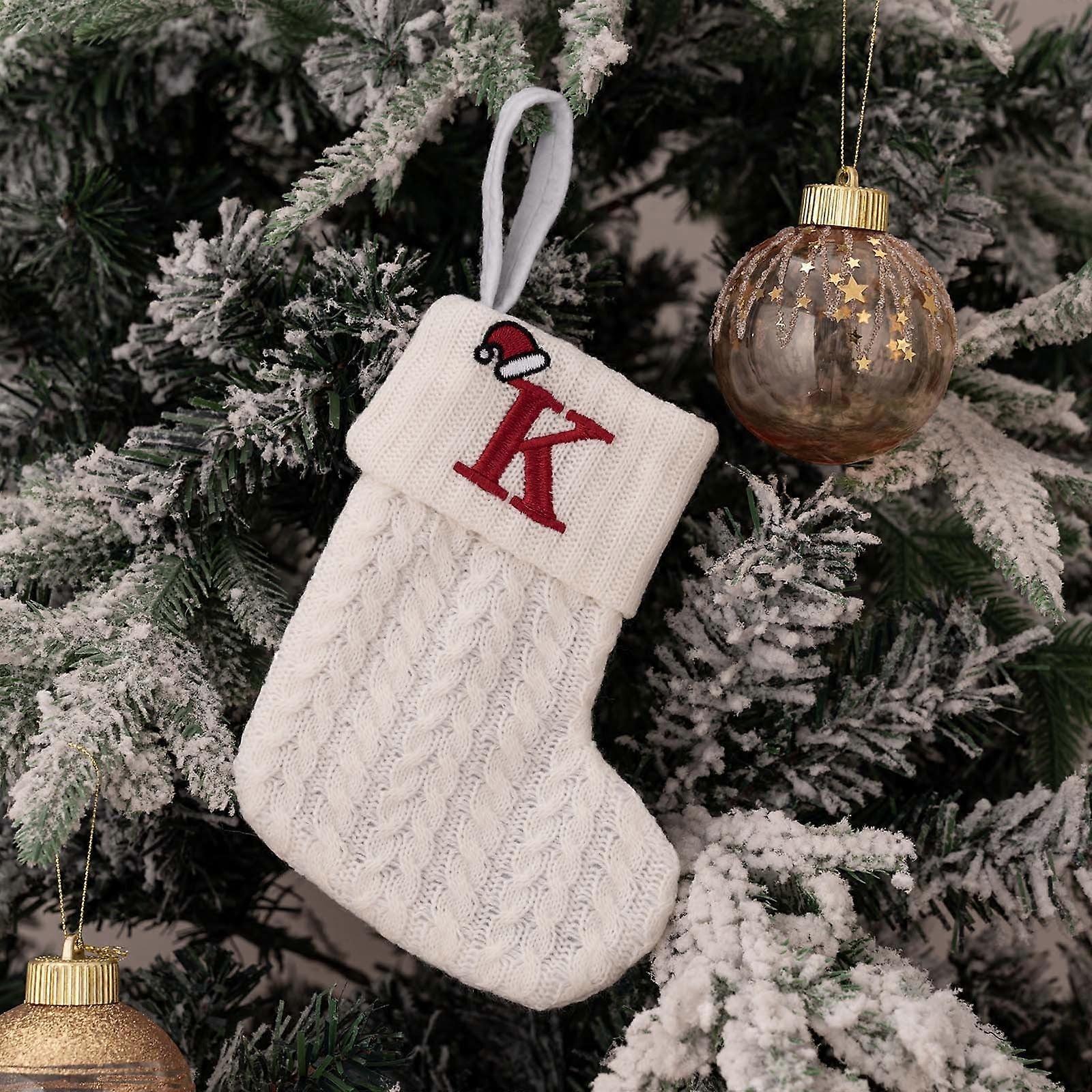 Djunllk Christmas Stockings, Vintage Knitting Xmas Ornaments with 26 Letters, Bulk Hanging Sock for Gifts, 13 inch, compatible with Christmas Decor