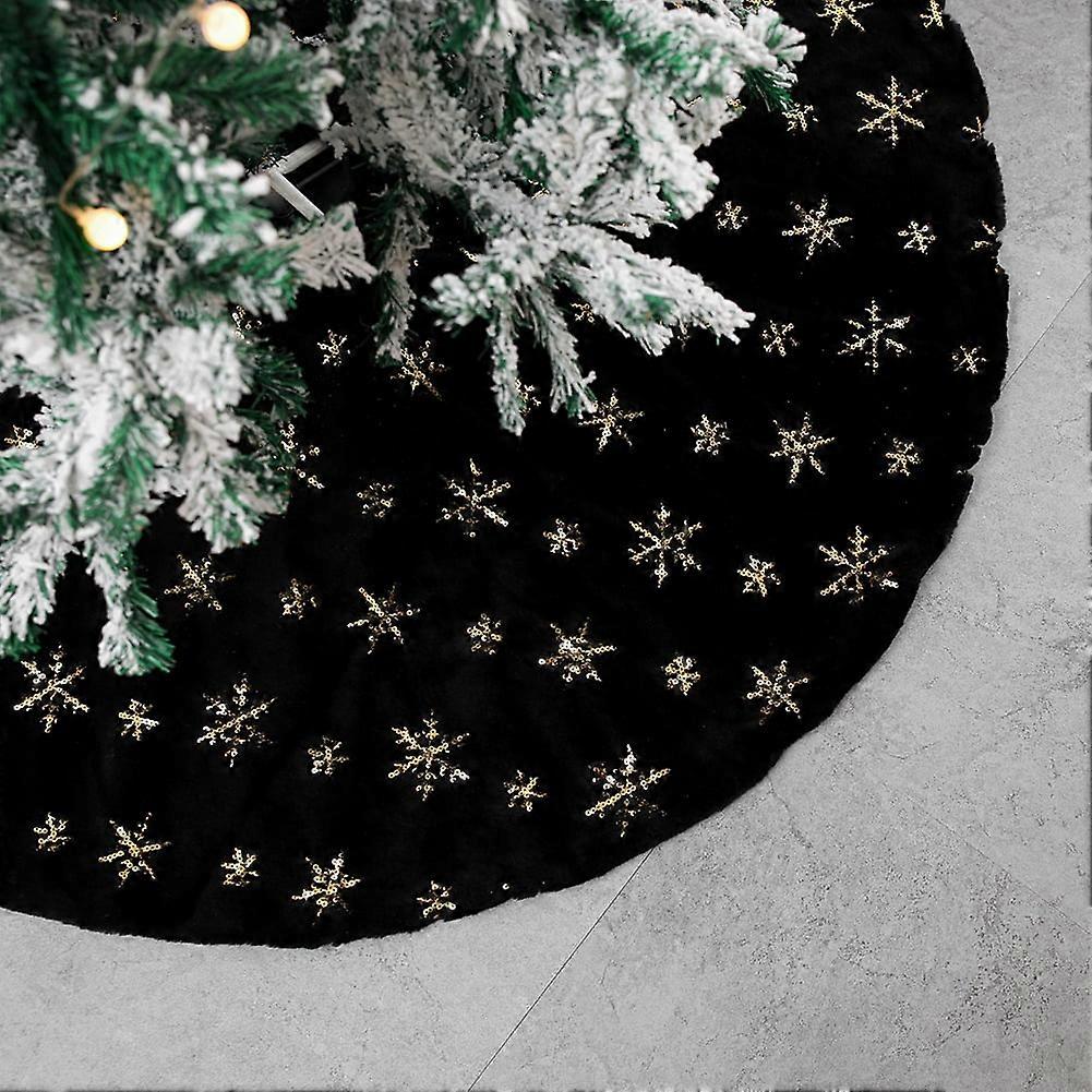 Christmas Tree Skirt Black 47 Inch Faux Fur with Gold Glitter Snowflake Soft Fluffy Tree Skirt for Christmas Party Decoration
