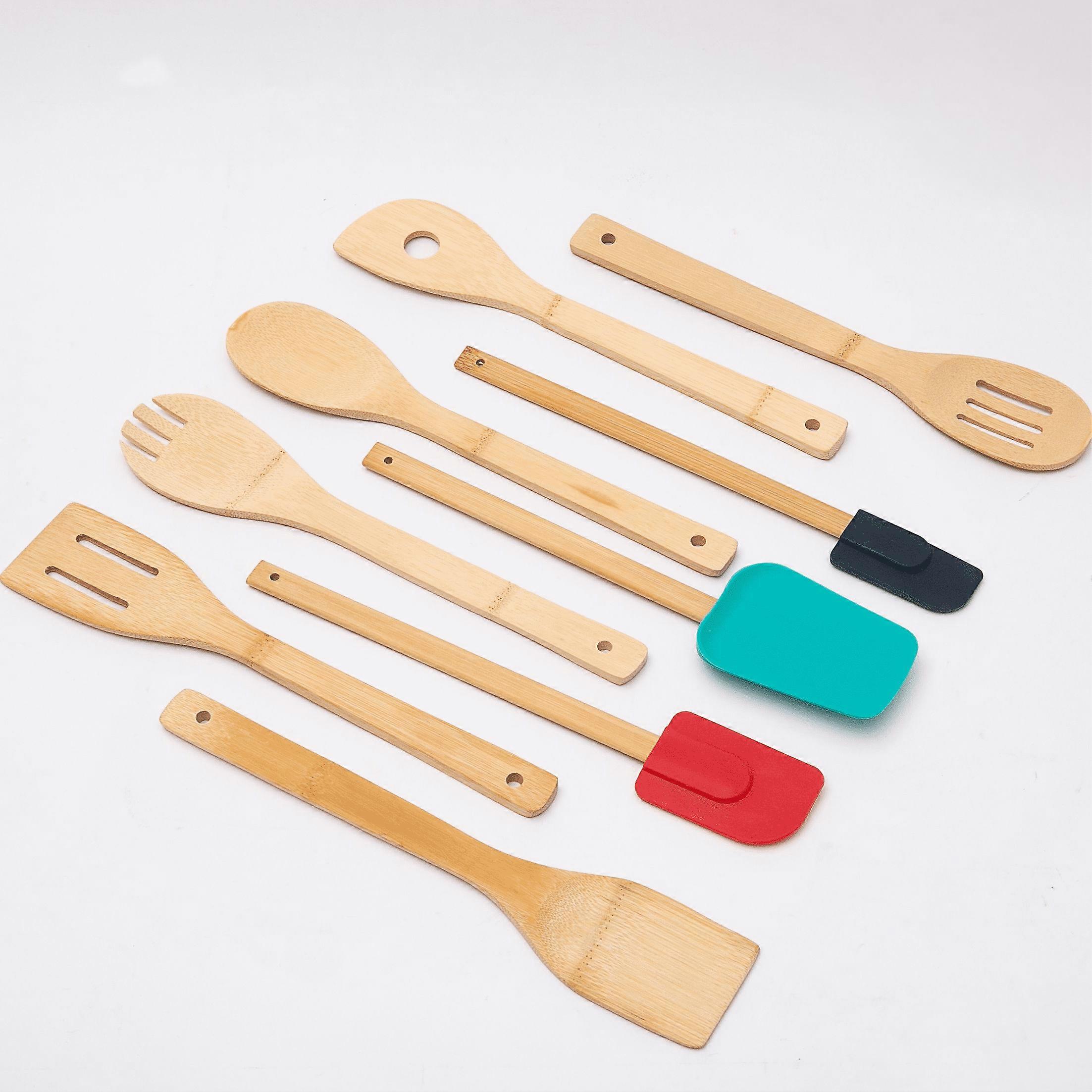 Mainstays 100% Natural Bamboo Tool and Gadgets 9 Pieces Utensil Set for Cooking