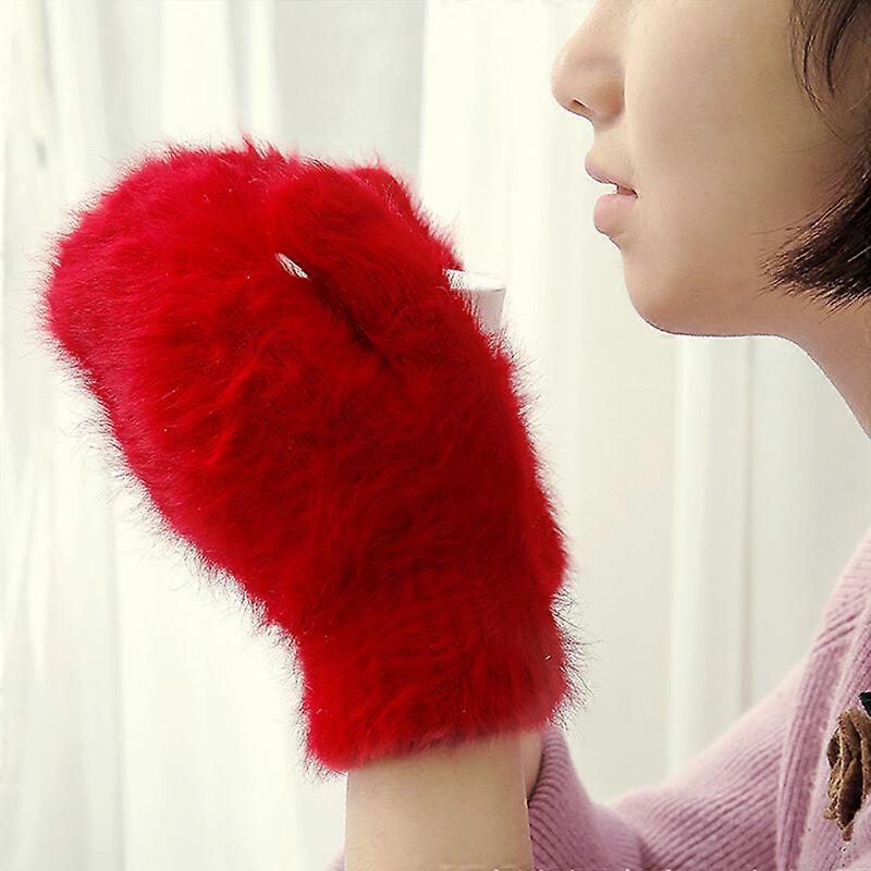 Rabbit Fur Gloves Female Winter Fingers Winter Warm Womens Gloves Girls Mittens