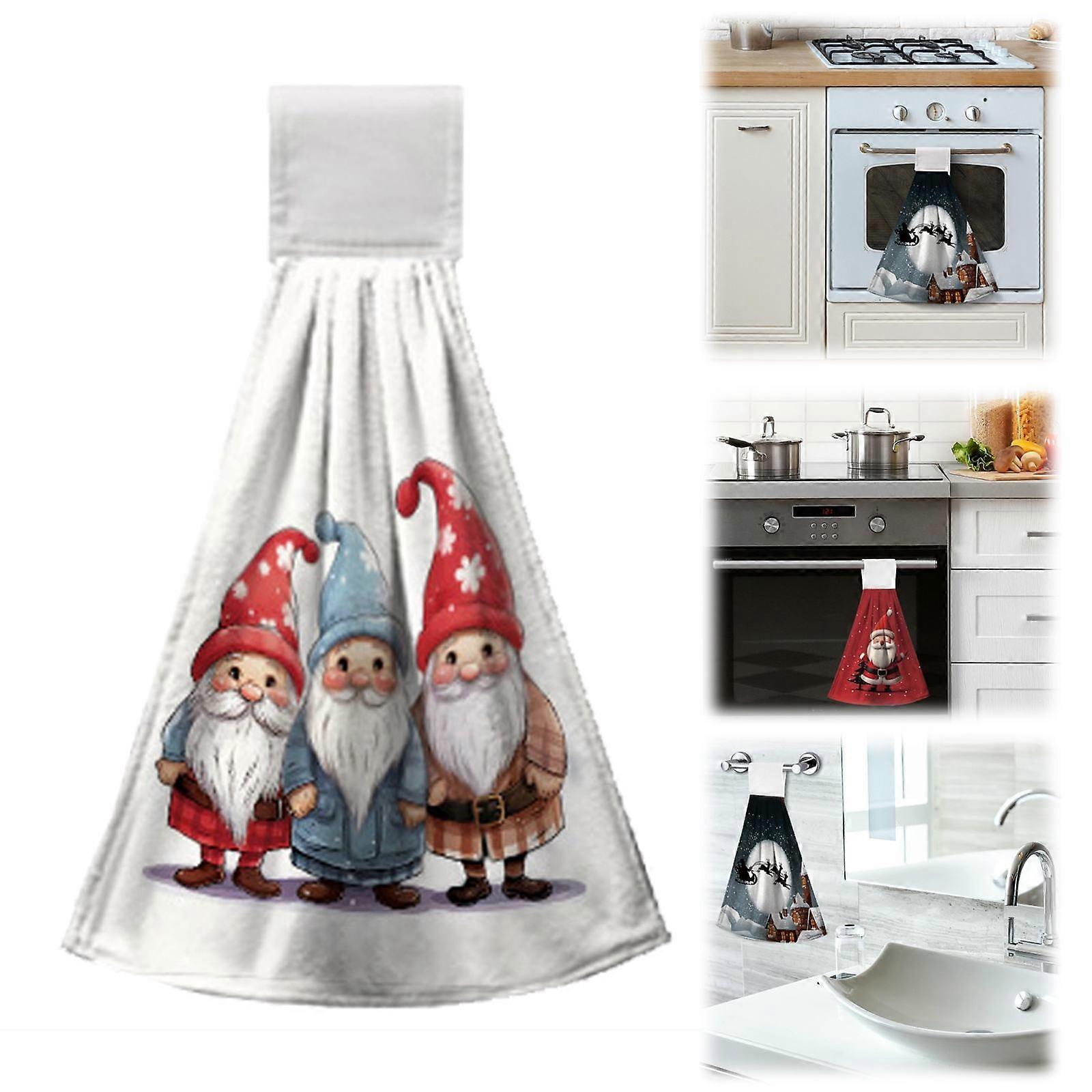 Christmas Hanging Hand Towel, Xmas Wonderland Forest House Dish Towel with Hanging Loops, Soft Absorbent Fingertip Bath Towel for Kitchen & Bathroom