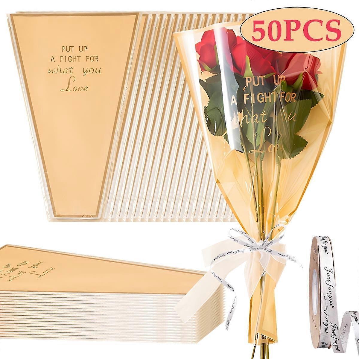 Flower Bags for Bouquet Flower Bouquet Wrapping Paper Floral Sleeves with Ribbon Clear Front Kraft Paper Bouquet Bags Large Size 11" x 17" 50 Pcs