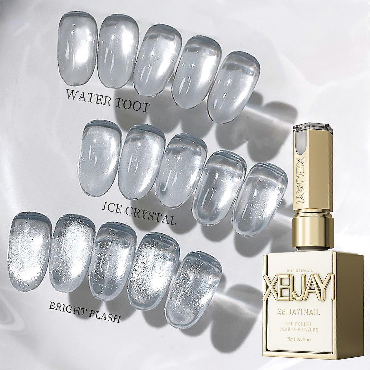 XEIJAYI 3pcs 15ml White Plain water cat's eye Magnetic Gel Nail Polish - Ultra Shine, Quick-Dry, Soak-Off UV/LED Varnish for Stu