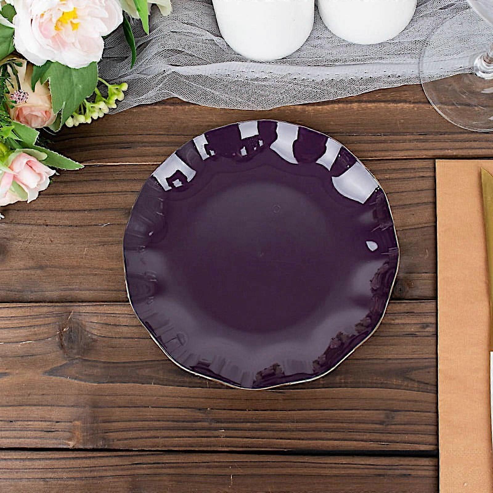 BalsaCircle 10 Purple 6" Round Disposable Salad Dinner Plastic Plates Gold Wavy Trim Wedding Party Tableware