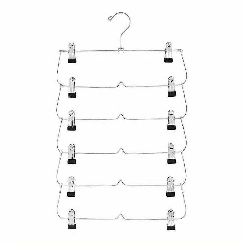 6-Tier Skirt Hangers with Clips - Metal, Non-Slip Space Saving Pants Hangers W/Adjustable Clips & Swivel Hooks - Skirt Hangers