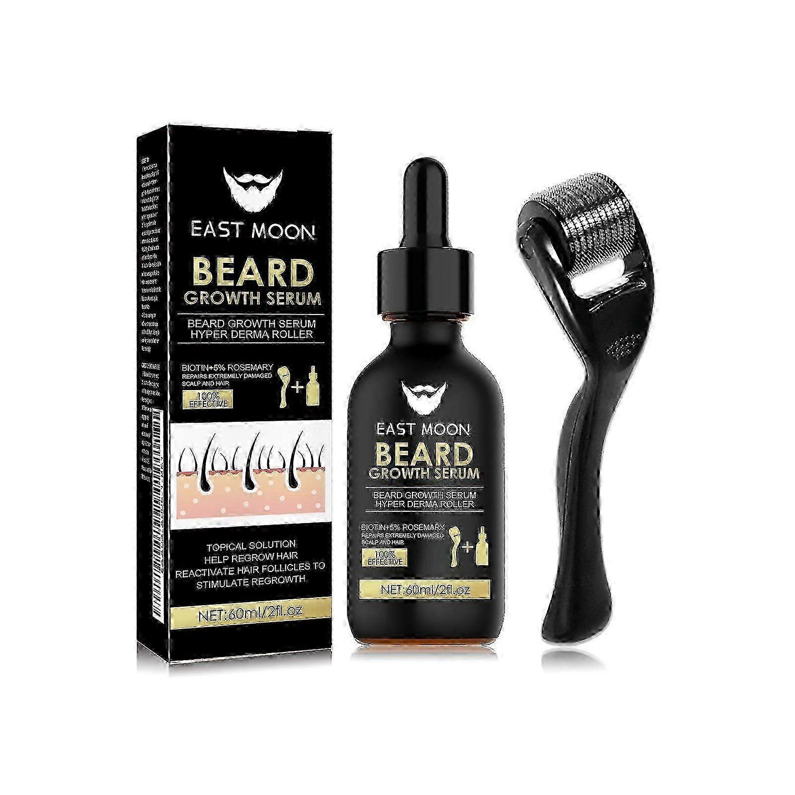 Men's Beard Growth Kit - Nourishing Serum with Mineral & Castor Oil + Stainless Steel Roller for Thicker, Fuller, Healthier Beards Easy 2-3 Times Wee