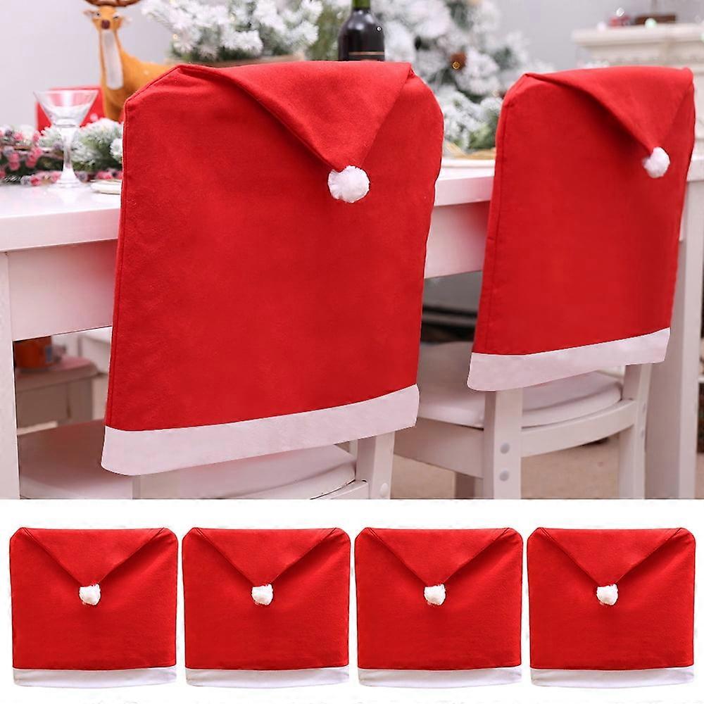 Lovote Christmas Chair Back Cover Set of 4 Santa Claus Red Hat Dining Chair Slipcovers for Xmax Holiday Festival Decor