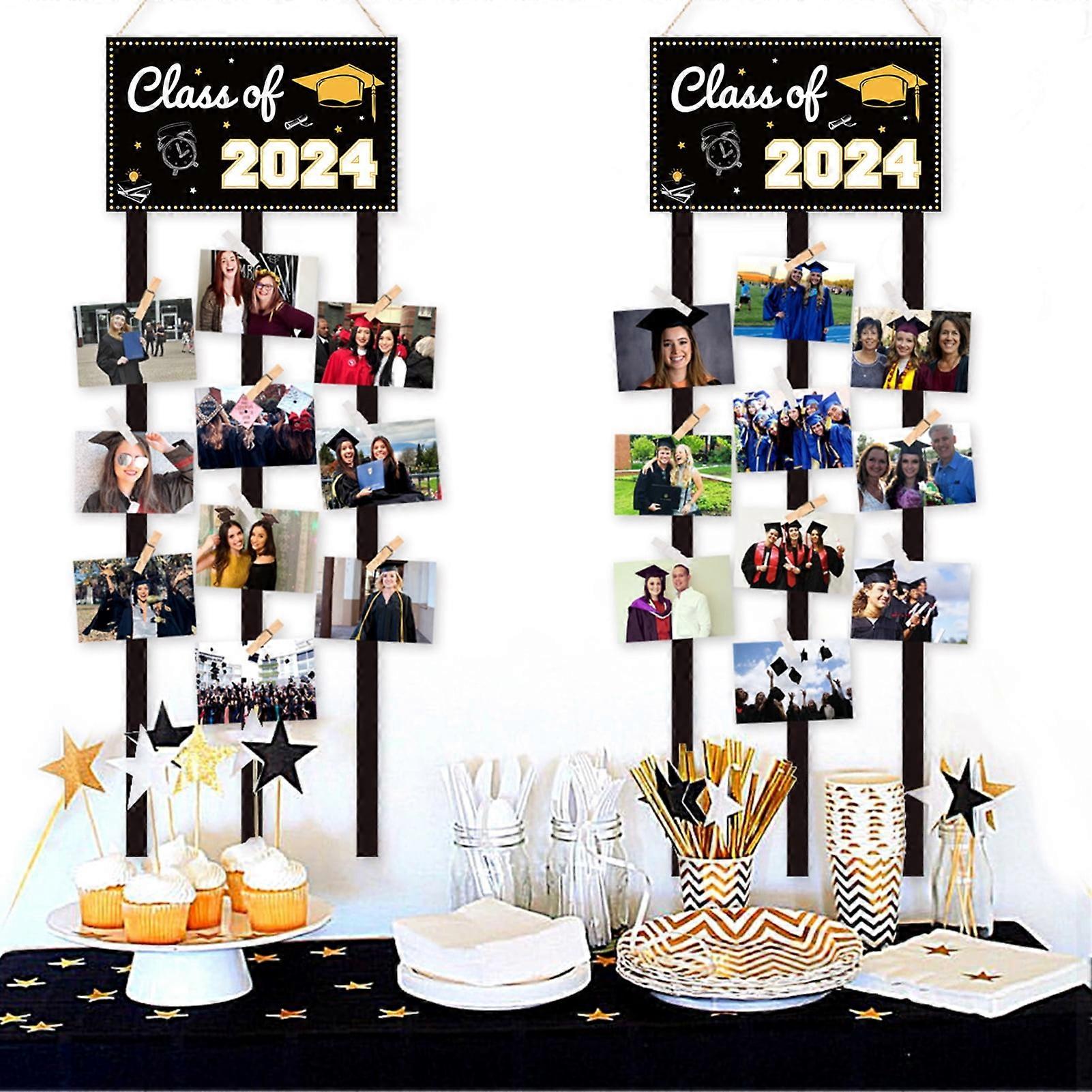 SUSUchens 2024 Graduation Photo Display Rack, Compatible with Her/Him, Hanging Picture Frame for School College Gift Party Decor DIY Black