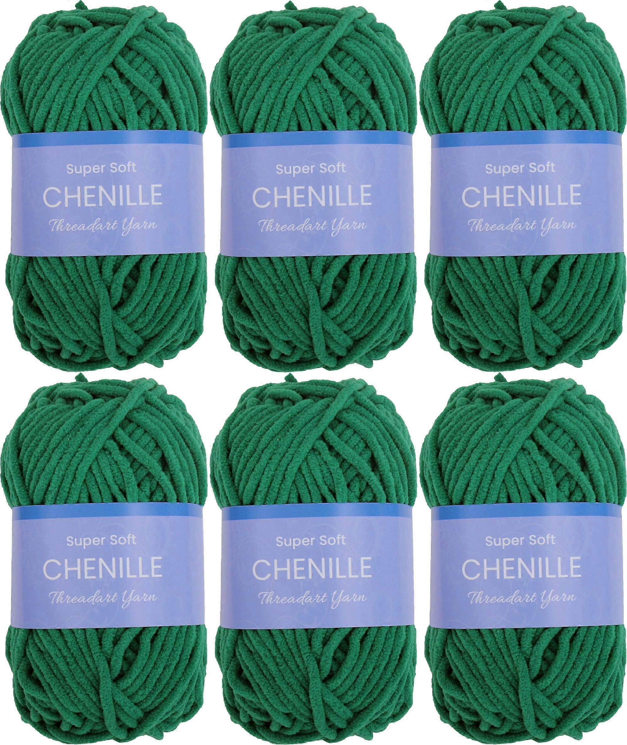 6 Pack ThreadArt Chenille Yarn for Crocheting, Knitting, Amigurumi, Super Soft Plush Velvet Yarn - 50 Gram 60 yds #5 Fluffy Yarn Skeins - Pine Green