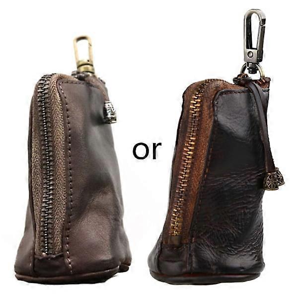 Portable Vintage Leather Key Case Holder Car Key Wallet Case for Case Keychain Bags Wallet Zipper Organizer Coffee 0.06
