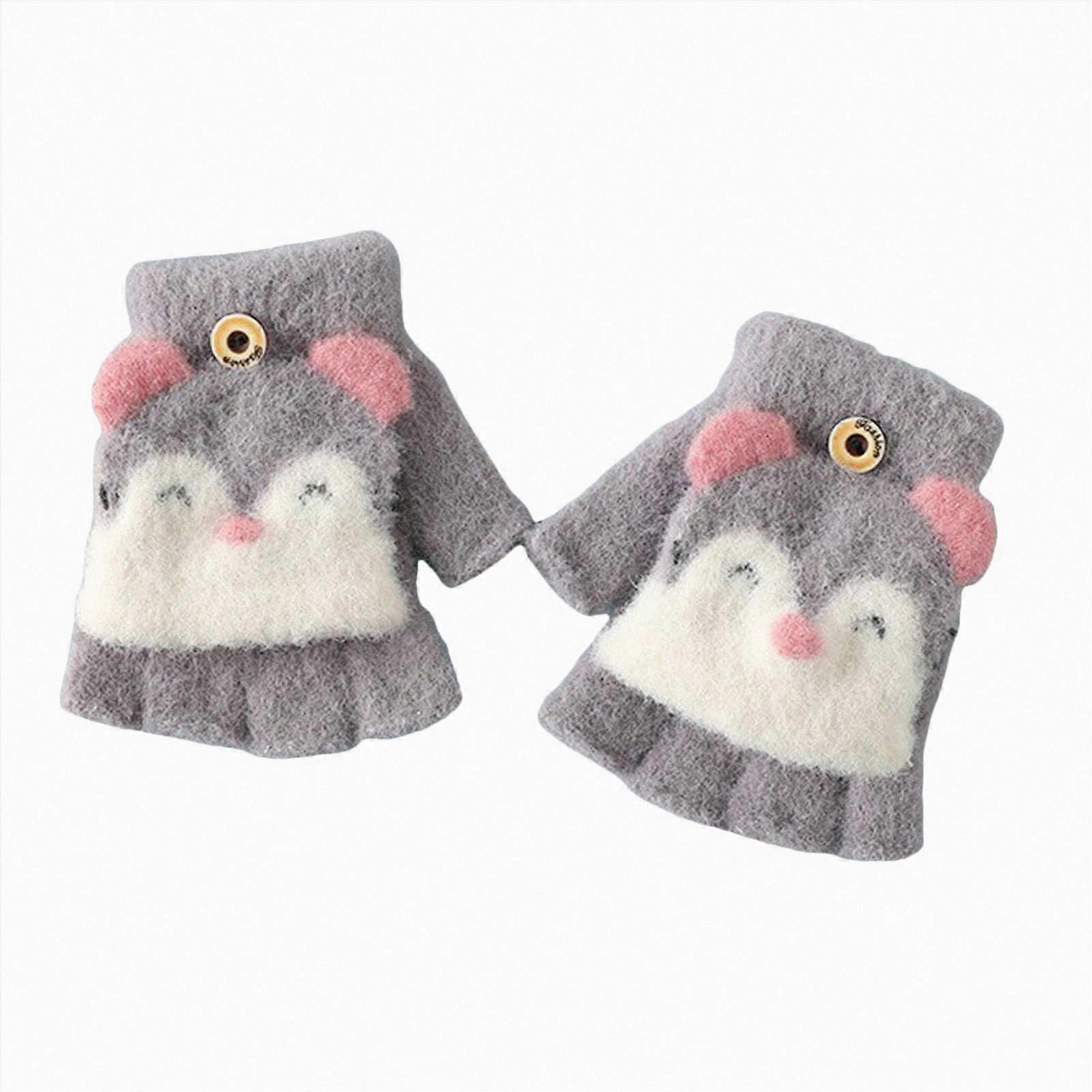 Gvdentm Cartoon Convertible Flip Top Gloves Toddler Kids Winter Wool Knit Fingerless Gloves with Mitten Cover for Girls Boys(Purple,3-6 Years)