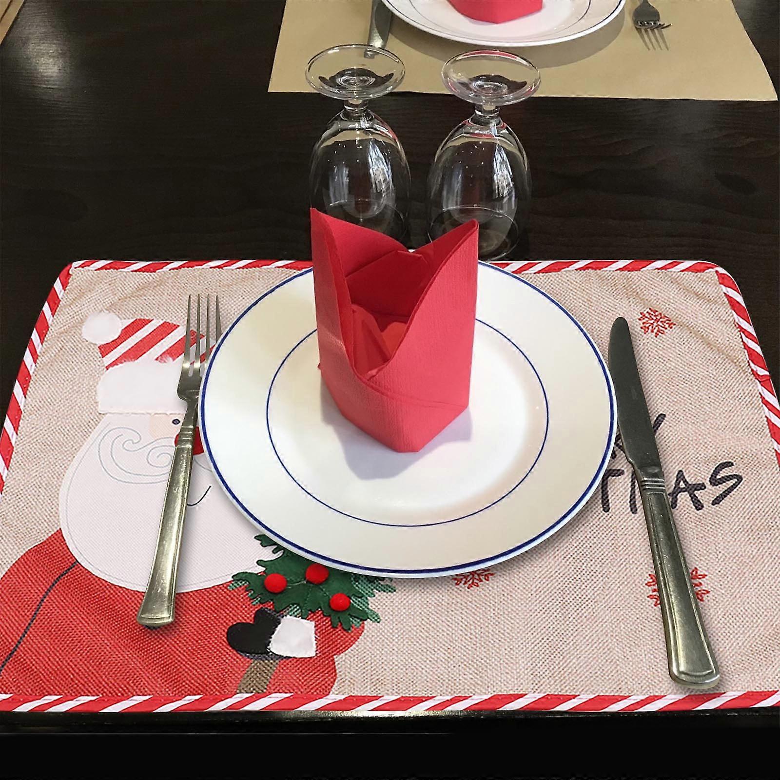Santa Snowman Christmas Decorations Clearance, Embroidery Placemat Set Compatible with Holiday Table Ornaments, Insulation Mat