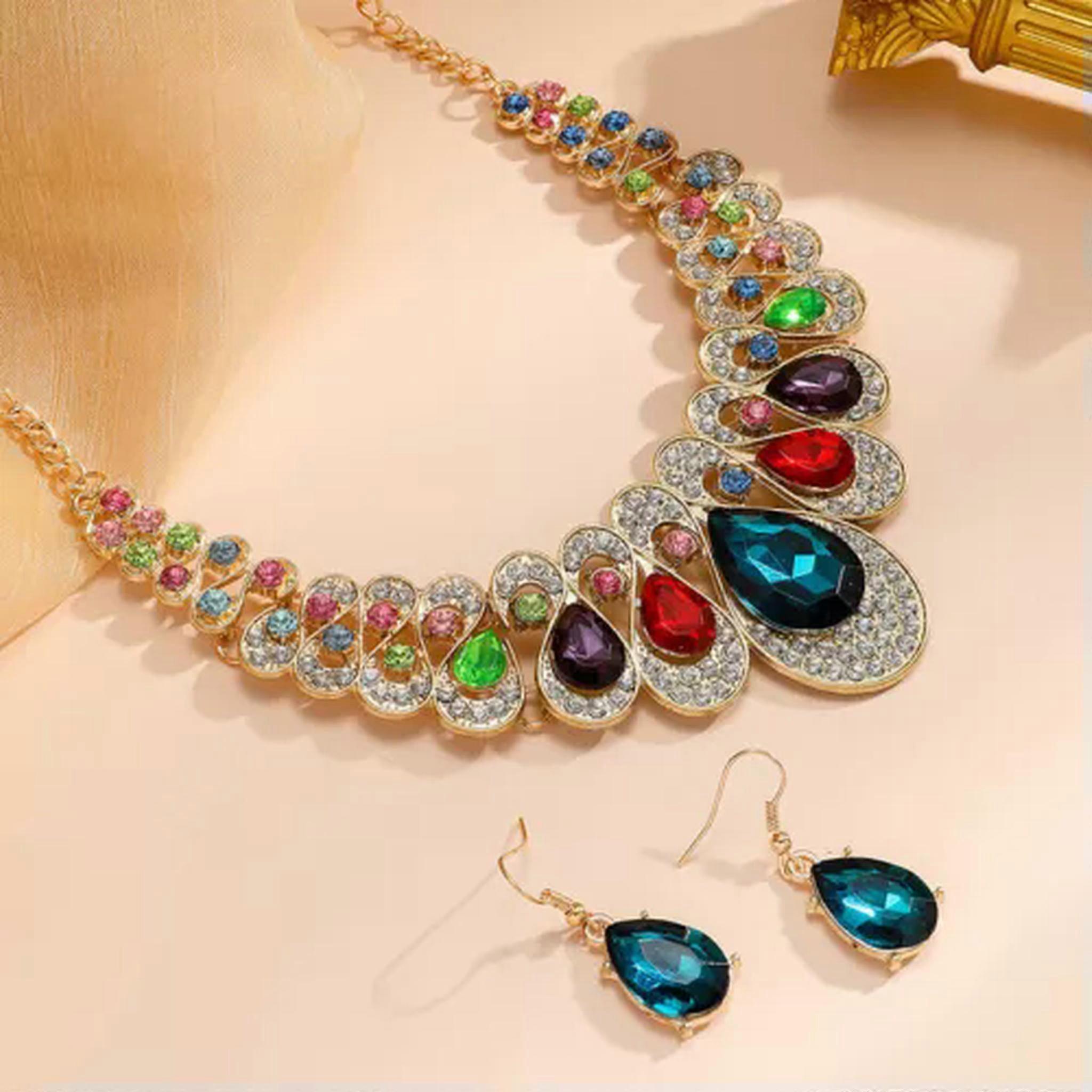 RSAMD 1 Set Jewelry Fashion Metal Sparkle Diamond Necklace Earring Set For Womjo-Multicolor-