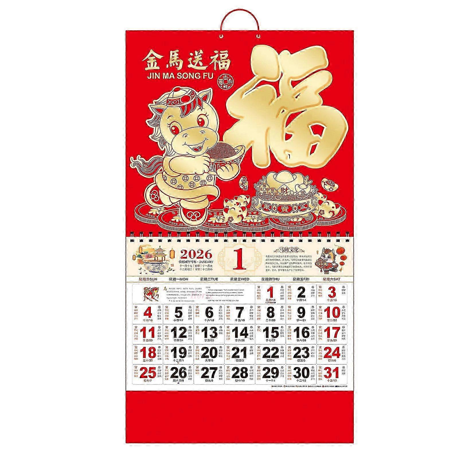 Kaesi Chinese Wall Calendar 2026 The Year of Horse Wall Hanging Calendar for Chinese New Year Home Office Chinese Restaurant Supermarket Dec