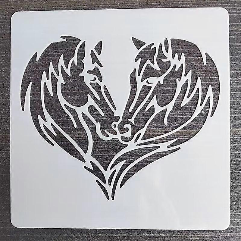 13*13Cm Love Twin Horses Template DIY Layering Stencils Wall Painting Scrapbook Coloring Embossing Album Decorative Card Templat