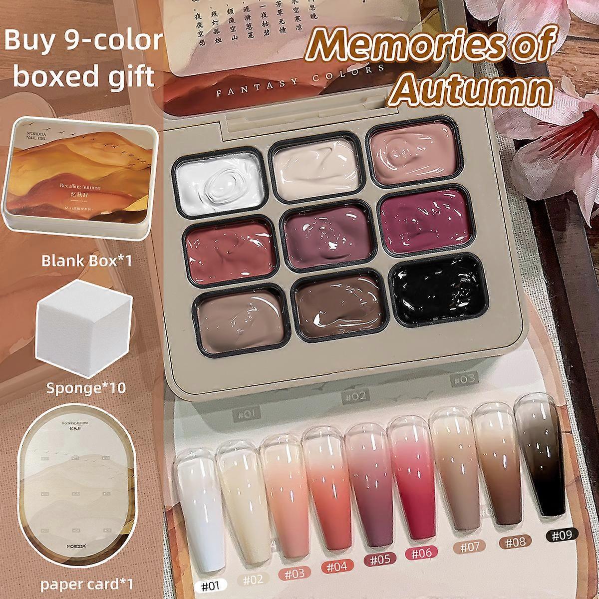 9-colors Memories of Autumn patter glue smudges canned high saturation popular semi-solid nail polish glue nail salon