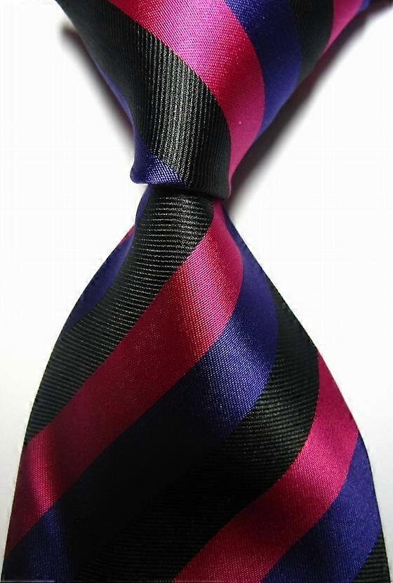 Hot!Classic Striped Black Rose Purple JACQUARD WOVEN 100% Silk Men's Tie Necktie