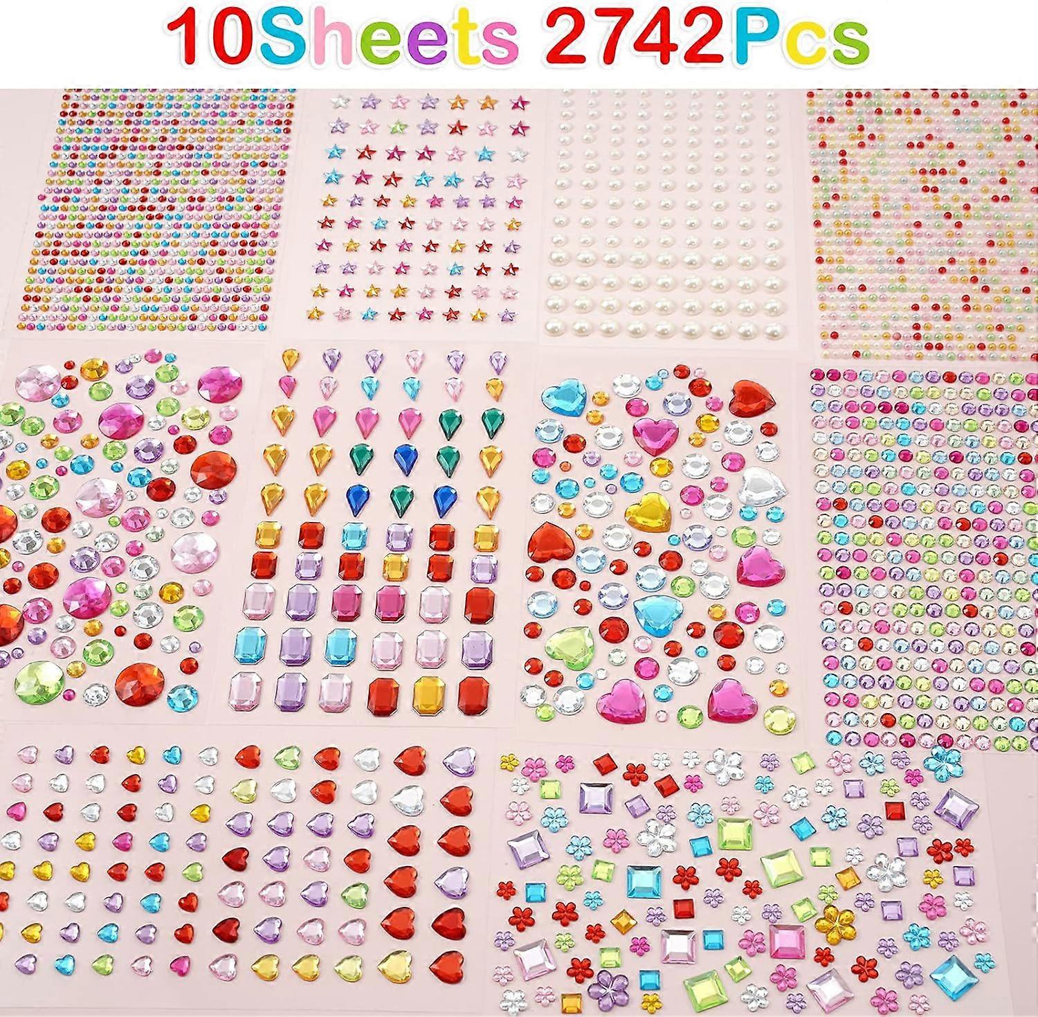 2742pcs Gem Stickers Jewels for Crafts Self-Adhesive Rhinestone Jewel Stickers, Stick on Gems Rhinestones for Crafts, Acrylic Bl