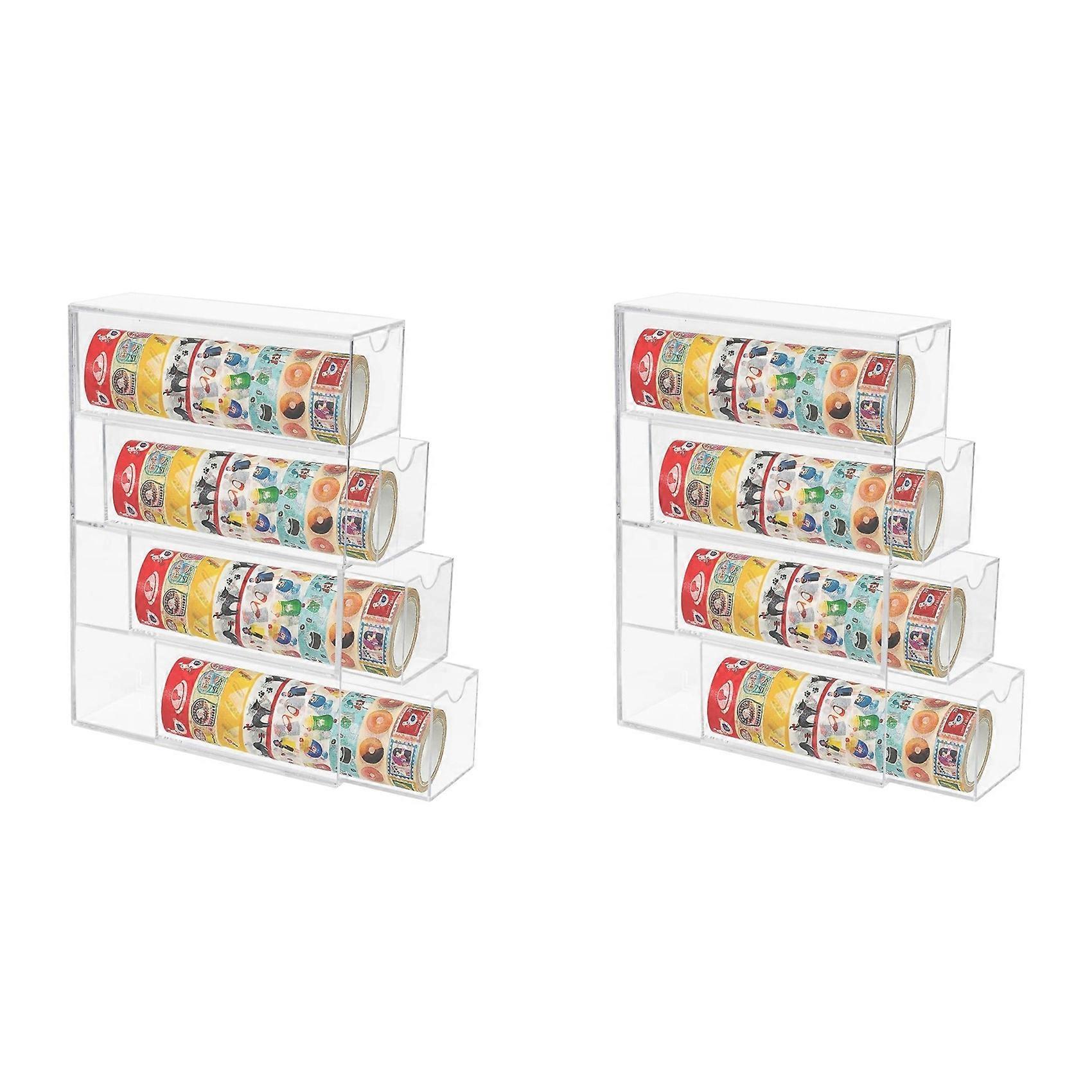 2X Washi Tape Organizer, 4 Drawers Stackable Plastic Washi Tape Box Organizer Storage, Clear Storage Drawers