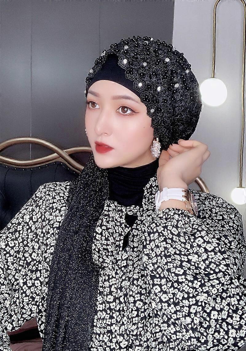 Latest Lace Beading Turban Cap Women Muslim Party Hijab Headscarf Dubai Shawls